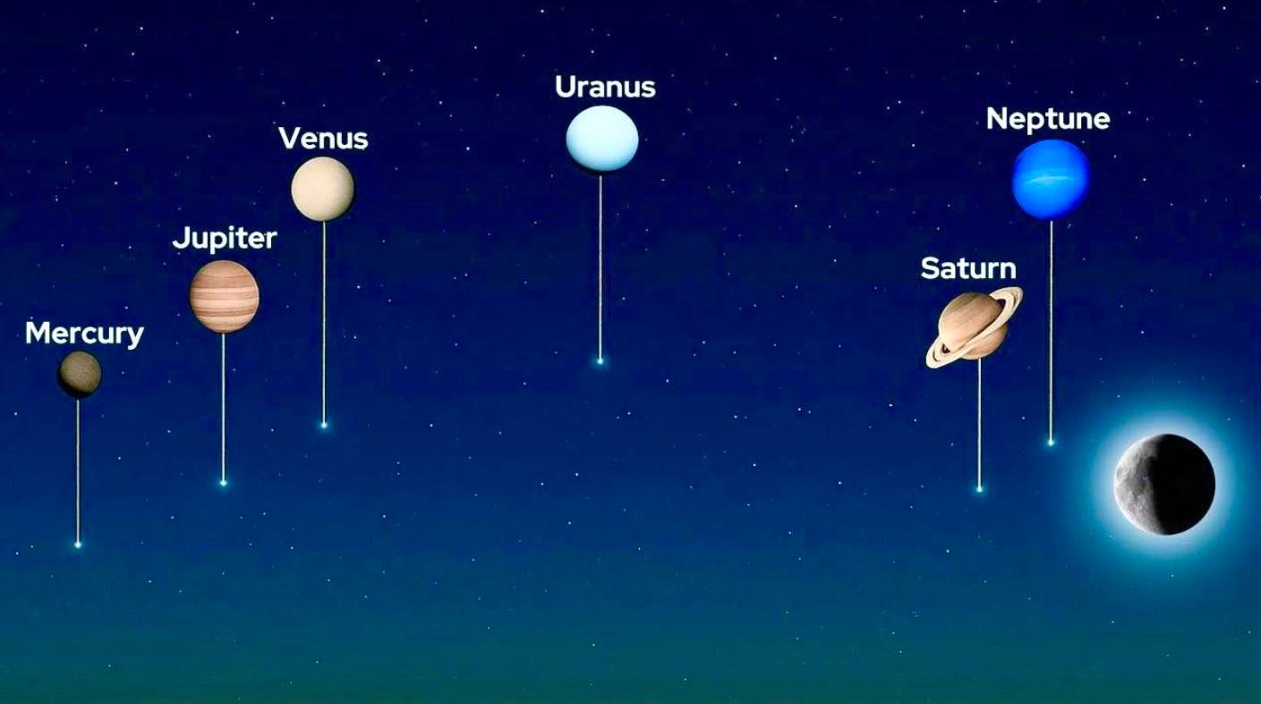 вечером в воскресенье, 17 августа 2025 года, ночное небо раскроется, как огромное бархатное полотно, приглашая нас в редкий момент небесной гармонии. При убывающей Луне, едва видимой, звезды будут мягко мерцать над нами, в то время как шесть его ярких спутников — Меркурий, Венера, Юпитер, Сатурн, Уран и Нептун — начнут свое изящное шествие. Это не строгое выравнивание, а священное собрание, как будто космос на несколько ночей напоминает о своих заблудших детях, нашептывая нам тихую красоту единства.