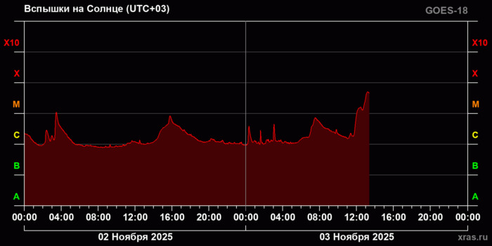 3 ноября 2025 года в России (магнитуда 6,1) и Афганистане (магнитуда 6,3) произошли мощные землетрясения, повлекшие за собой многочисленные жертвы. Кроме того, Ямайка продолжает восстанавливаться после сильного урагана, который обрушился на страну несколько дней назад и который, как говорят, стал самым разрушительным за всю историю этого острова. Пожалуйста, молитесь за эти регионы, а также за всю нашу планету, которая получает мощную очищающую энергию. Солнечные вспышки происходят на уровне «M3.57-класса» и «M.5-класса», а скорость солнечного ветра достигает почти «500» км/с. Вспышки «X-класса» — самые мощные — не исключены, учитывая рост космической энергетики. С обратной стороны Солнца происходят корональные выбросы массы (КВМ), огромные корональные дыры поворачиваются в сторону Земли, и когда это происходит, геомагнитные бури достигают уровня «G1» или выше. Текущий «индекс КП» оценивается как «нестабильный», что свидетельствует о сильной активации «Её» тектонических плит и частиц магнетита, которые влияют на частоту и амплитуду планетарных колебаний («глобальный резонанс Шумана»).