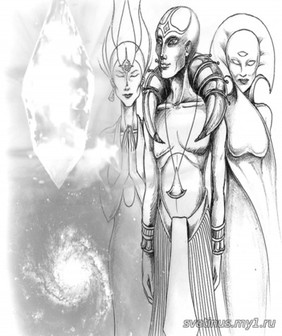 Это далеко не полный перечень жителей этих планет, их намного больше. Это только те их них, что повлияли на нашу планету. Далее расскз ведет Торан. АНДРОМЕДА Созвездие Андромеды ЗЕНЕОни — колония лирианцев, покинувших Вегу, чтобы поселиться в системе Зене, созвездие Андромеды. Эта двойная звёздная система также называется Титавин и имеет четыре планеты на орбите плюс три планетоида. Зене — чрезвычайно духовная раса, равная охорайцам-арктурианцам (и иногда их путают с ними). Это гуманоиды с синей кожей у мужчин и более светлой кожей у женщин (у женщин может быть даже золотистая кожа и золотистые волосы). Они произошли от таал-лиранцев из системы Ман, которые бежали от войны и поселились в системе Вега. Именно там их физические особенности привели к появлению голубоватой кожи. Во второй раз из-за перенаселения на их планете Адара группа решила мигрировать и основать новую колонию. Как и зайгоны, зенаи адаптировали свой геном к атмосферным условиям и компонентам своей новой планеты, поскольку лиранцы хорошо знают, как это делать. Они могут жить до 1800 (Т) лет. Зенаи — мирная и сдержанная цивилизация, часть Галактической Федерации Миров. Их общество основано на очень древней структуре, похожей на воинскую, которую они преобразовали в общество духовных воинов. Зенаи будут бороться за мир и защищать права всеобщей справедливости, в основном работая над восстановлением баланса частотных полей. Их высший каст мудрецов может достигать 12-й плотности, и их жизненная цель в основном связана с обучением, поскольку Зенаи питают страсть к науке. Они создали Андромедийский совет, который на самом деле является Зенайским альянсом, объединяющим около 140 различных видов. Высший совет этого альянса состоит из уникальных духовно развитых рас. Это неполитический орган. В настоящее время они активно взаимодействуют с Террой, наряду с Галактической Федерацией Миров, а также отправляя посланников (звёздные семена), чтобы помочь в этот переломный момент в эволюции земной расы. Они предвидели будущее Терры и, зная, что это переломный момент в её истории после 5700 лет оккупации рептилоидами, пытаются повлиять на то, чтобы она пошла по конструктивному, а не разрушительному пути. Они работают над тем, чтобы не дать землянам впасть в галактическую тиранию, которая может разразиться прямо сейчас, в этот переломный момент, из-за союзов тёмных корпораций Земли и коллективов Циакхарр, Ориона и Альтаира. На самом деле, они не только спасают землян, но и устраняют галактическую угрозу, возникшую в результате слияния с новым врагом. Зенаи используют эфирные и межпространственные путешествия. А также путешествия во времени. Их корабли сделаны из эфирного стекла, и они используют плазменный двигатель, когда находятся в более плотной атмосфере. Их корабли часто имеют форму ромба или иной кристаллической геометрической структуры. ЗИГОНЗигрон — это лиранская колония, которая обосновалась в одной из двенадцати систем Андромеды, которую вы называете Грумбридж 34. Это гуманоиды, которые эволюционировали в соответствии с составом воздуха на своей новой планете, став выше ростом, и приобретя бледно-голубую кожу. Их продолжительность жизни тоже увеличилась; они могут жить до 2000 (Т) лет. Хотя Зайгоны и являются частью Галактической Федерации Миров, они никогда не интересо