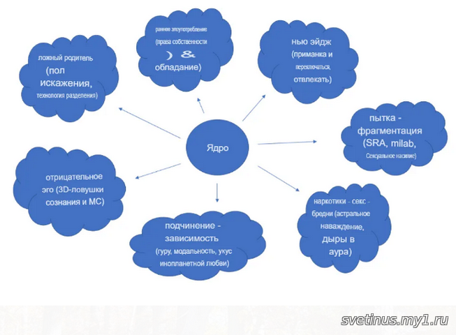 6. Разыгрывание обмана для создания условий для сценариев покидания и предательства в более близких семейных отношениях, а также в интимных или сексуальных отношениях. Покидание и предательство — это очень болезненные первобытные страхи разлуки для всех людей, поэтому NAA использует эмоциональные страдания людей, чтобы снова и снова разыгрывать эти сценарии предательства ради своего удовольствия и для сбора негативной эмоциональной энергии. Многие из них проявляются в виде отношений, основанных на «любовном укусе» инопланетян, когда люди, участвующие в них, находятся под контролем разума из-за собственной незажившей боли и верят, что это долгосрочные позитивные духовные отношения, такие как союз близнецовых пламен и т. д. Боль от предательства может быть настолько сильной, что отчаянное стремление избавиться от неё с помощью вечеринок с другими людьми происходит под видом творчества и игры.